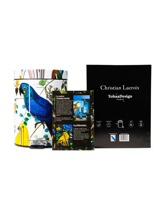 Dieser Kosmetikeimer ist aus einer exklusiven Zusammenarbeit zwischen dem renommierten Haus Christian Lacroix und TohaaDesign entstanden und bringt sanfte Energie und Licht in Ihr Zuhause. Auf weißem Grund trägt er das berühmte Motiv "Birds Sinfonia" aus dem Hause Christian Lacroix. Ein Hauch von Eleganz und Erhabenheit für eine einzigartige Deko!