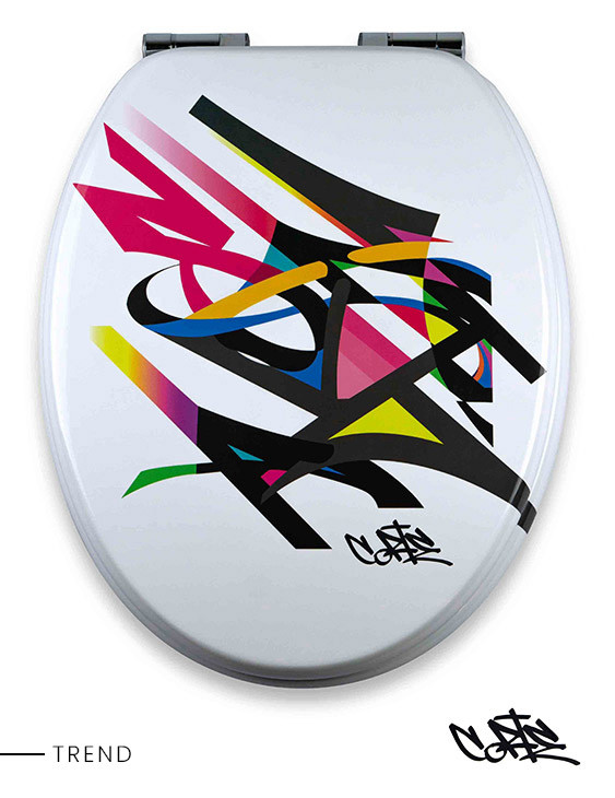 Cette lunette de WC chic et design signée Camilo Ortega F. donne une touche street art élégante à vos toilettes. Artiste Chilien émergent, Camilo Ortega F. alias Corte fait sortir le street art et réinvente le petit coin ! Avec "Saray03" pour TohaaDesign, du nom d'une ville turque de la région de Marmara, il intègre son art audacieux et coloré à votre quotidien.