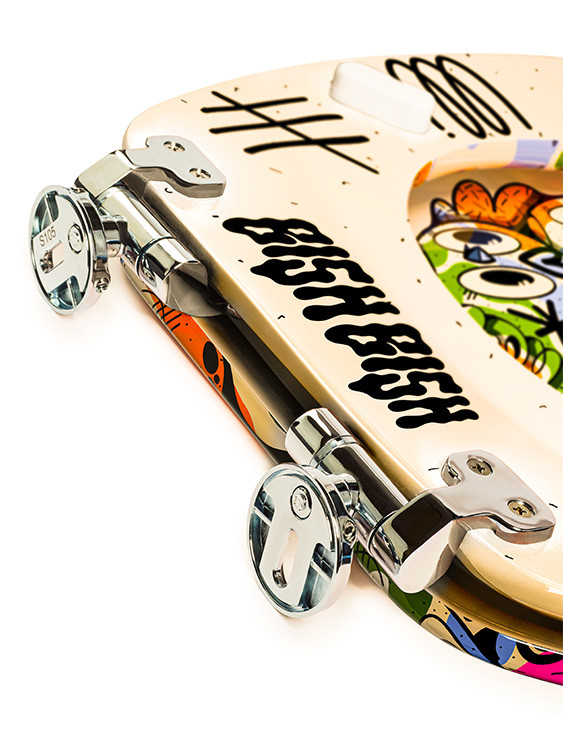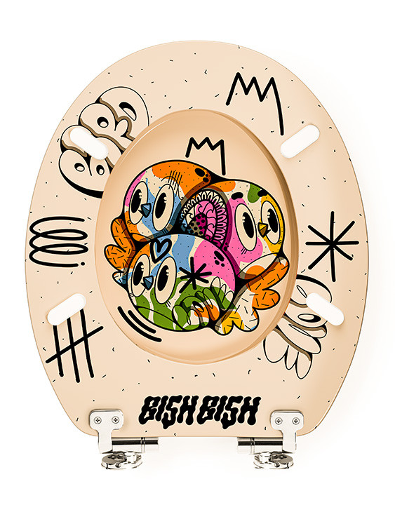 L’abattant WC Color Bomb, deuxième modèle exclusif signé par l’artiste Bishop Parigo pour TohaaDesign, explose de couleurs avec son fond pastel délicat et ses oiseaux flashy pleins d’énergie. Le contraste entre les teintes douces et les touches vives crée un visuel graphique fort et immédiatement reconnaissable. Une création originale qui apporte une touche artistique et inattendue à l’univers de la salle de bain.