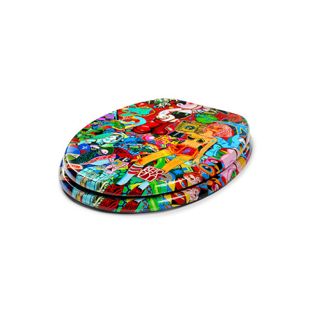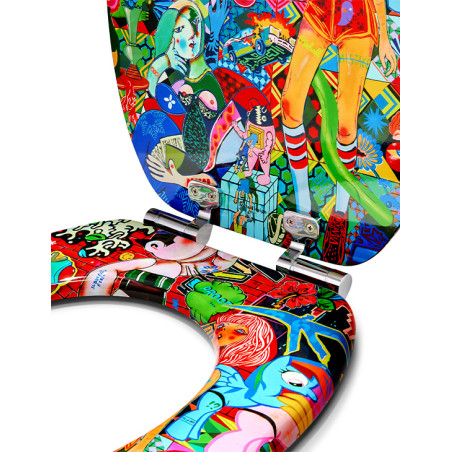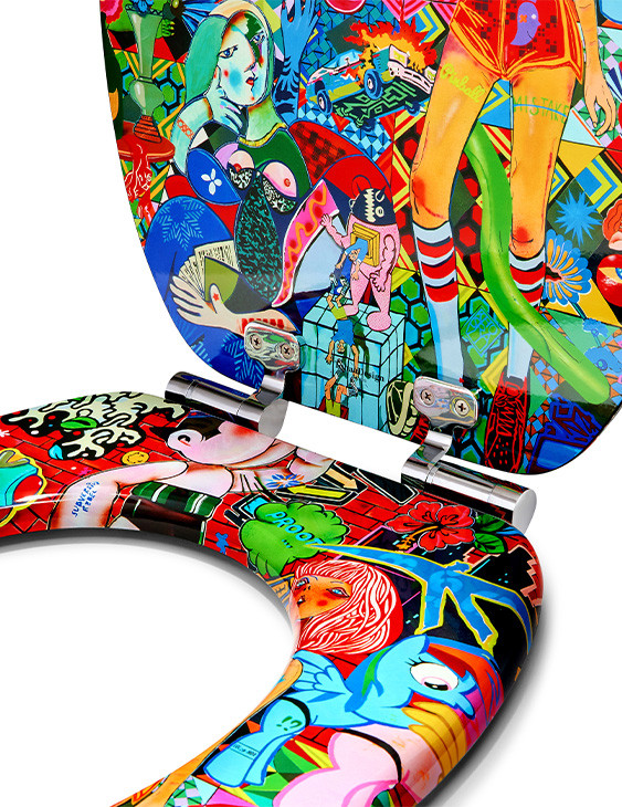 Ce modèle de lunette de toilette original haut en couleur nous transporte dans l'univers pop et dynamique du talentueux Guive Khosravi. "Vanity Fair" qu'il décline pour TohaaDesign, nous fait vivre une explosion de tonalités flamboyantes et de graphismes originaux.