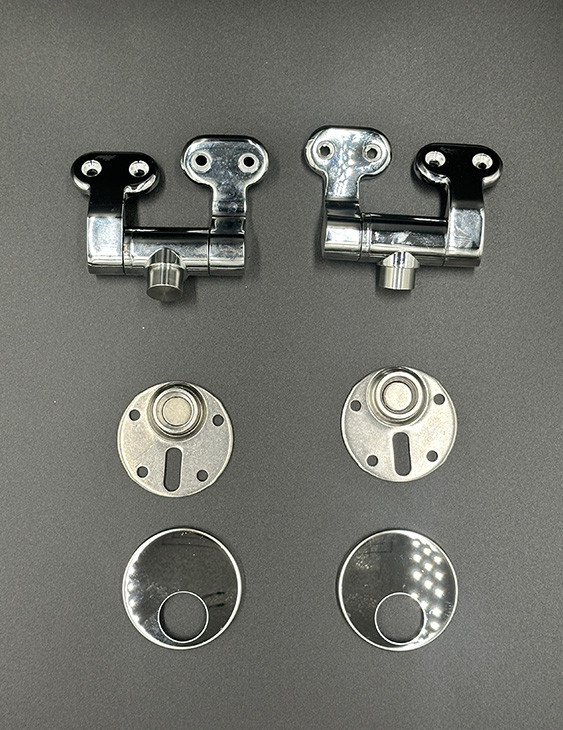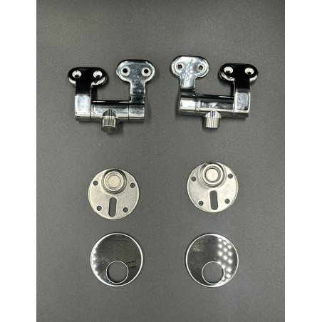 Charnière TohaaDesign TopFix avec 2 points d'ancrage (vérifier que votre charnière actuelle possède également 2 points d'ancrage). Avec frein de chute et système déclipsable. Set de 2 charnières (gauche et droite).