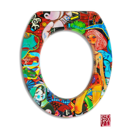 Discover the Vanity Fair children's reducer designed by French artist Guive Khosravi, a must-have accessory to accompany your little ones during this important stage of going to the toilet. With its pop-art style and cartoon characters, it will immediately appeal to your child. This playful reducer is designed to be both a design object for parents and a fun experience for children.