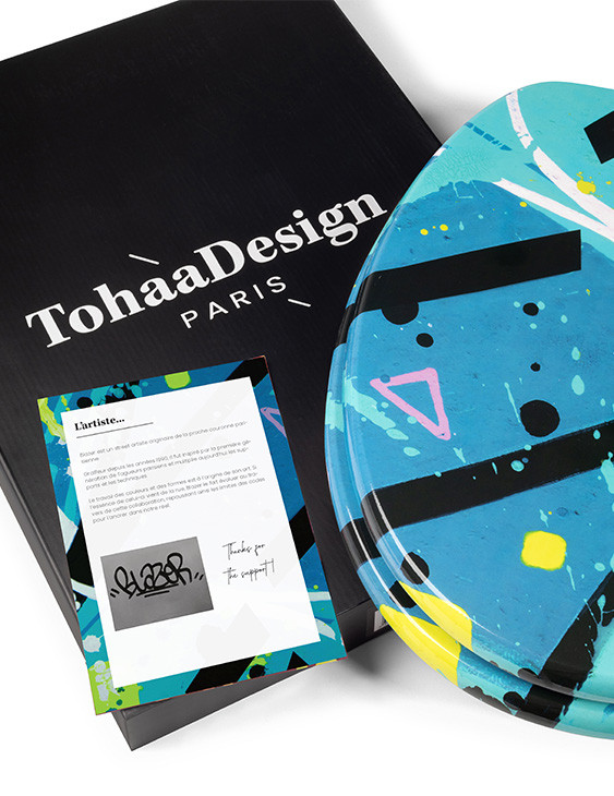 Il modello StreetSea è stato creato da un dipinto originale realizzato da Blazer nel 2018. TohaaDesign progetta collezioni di tavolette per WC originali e assolutamente uniche, in collaborazione con diversi artisti francesi. Dalle nostre collaborazioni nascono creazioni artistiche di alta qualità.